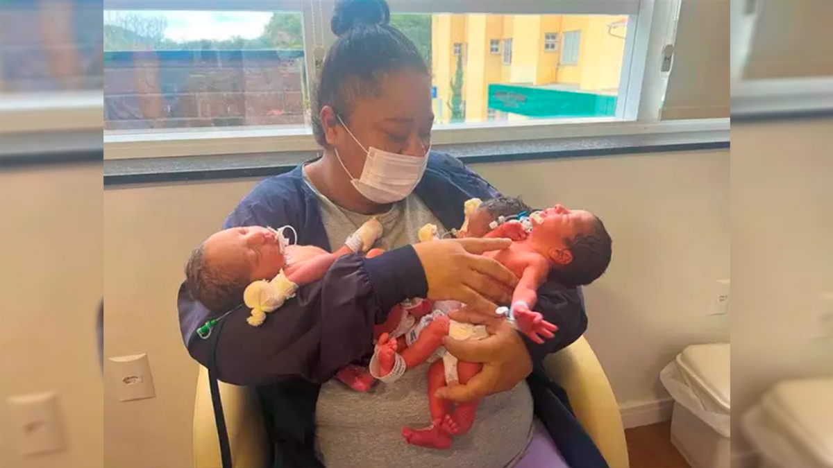 Mãe descobriu gestação dos trigêmeos enquanto estava se recuperando do último parto.