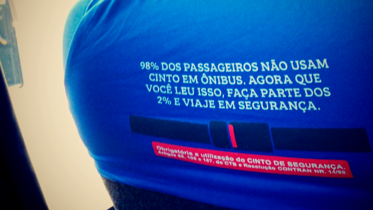 Importante destacar que, desde 1999, todo passageiro de ônibus é obrigado a utilizar o cinto de segurança durante a viagem. De acordo com o Código de Trânsito Brasileiro e com a Resolução 643 da ANTT, é obrigatório o uso do cinto de segurança para condutores e passageiros em todas as vias de território nacional. Não usar o equipamento durante toda viagem, é infração grave e a multa para o motorista e para a empresa varia entre R$ 1 mil e R$ 3 mil.