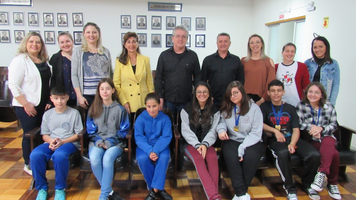 A Secretaria Municipal de Educação gerenciou a 6ª Etapa das Olimpíadas de Português do MEC – fase municipal, que iniciou em maio deste ano e finalizou neste mês de setembro. Foram classificados 8 alunos de 11 a 15 anos, de duas escolas públicas (Escola João Colodel e de Morro Chato), os quais seguem para a fase estadual. A premiação foi dividida em 5 categorias: poema, crônica, memórias literárias, documentário e artigo de opinião. Os alunos classificados receberam os prêmios na manhã desta quarta-feira (11/9), em solenidade no Auditório da Prefeitura, e foram recebidos pelo prefeito, Tiago Zilli e o vice-prefeito, Edson Jair Dagostin.