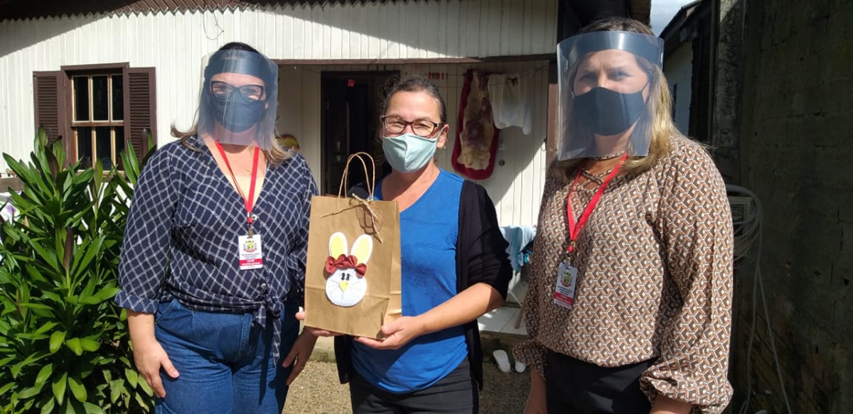 Além dos doces em alusão à Páscoa, as famílias também receberam atividades, materiais de artesanato, máscara e álcool em gel. Conforme a Secretaria da pasta, Elaine Salvador Zeferino, os encontros do SCFV são virtuais por conta da pandemia de Covid-19.