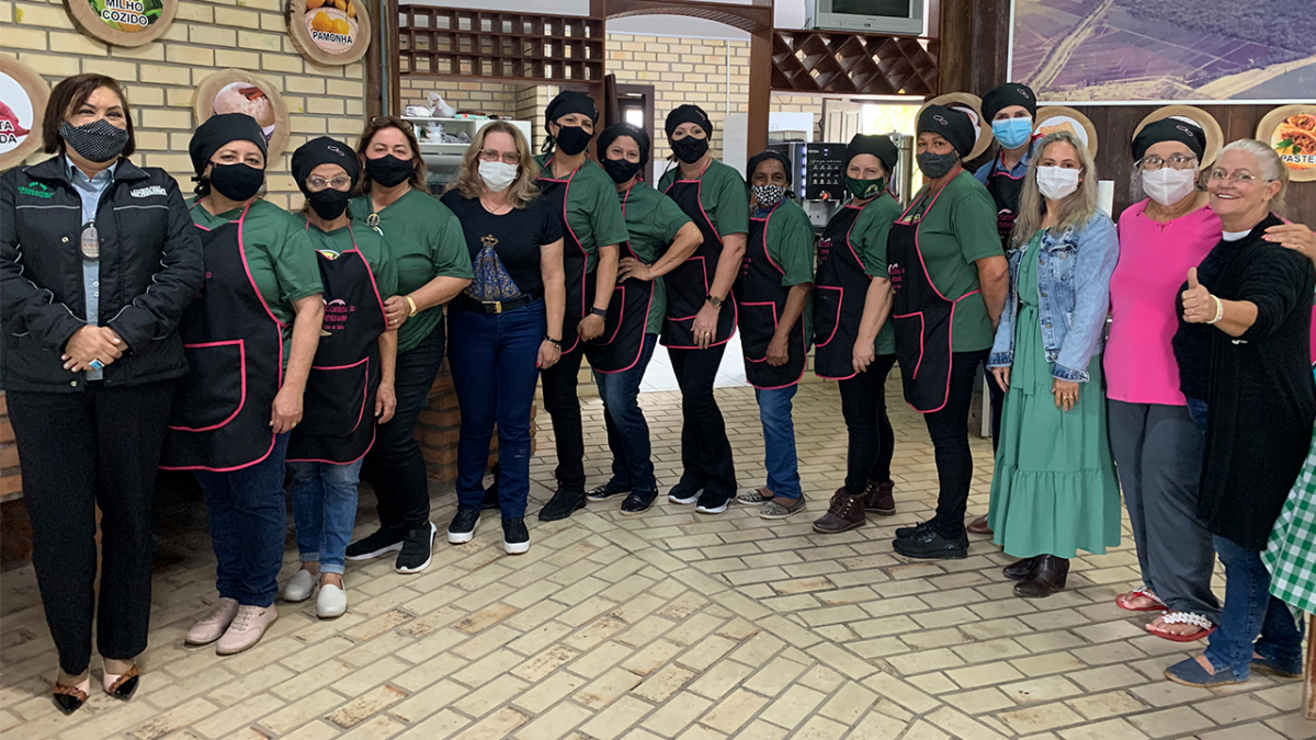 Segundo a presidente Eliete, assim que assumiu a associação, procurou o empresário Carlos Santos, de Araranguá (Funerária Santa Terezinha), onde solicitou apoio financeiro para a confecção de aventais e toucas padronizadas. "Ele já conhecia o trabalho que a associação vem realizado em Maracajá e bastante solícito nos repassou uma quantia em dinheiro e nós compramos o material, que totalizou em 30 aventais já bordados", explica. Ela aproveitou para agradecer o empresário. "Precisamos de mais empresários como o seu Carlos, que apoiam associações como a nossa, que busca valorizar e integrar as mães e as famílias dos colonos, através da confecção e venda de artesanatos e produtos coloniais", detalha.