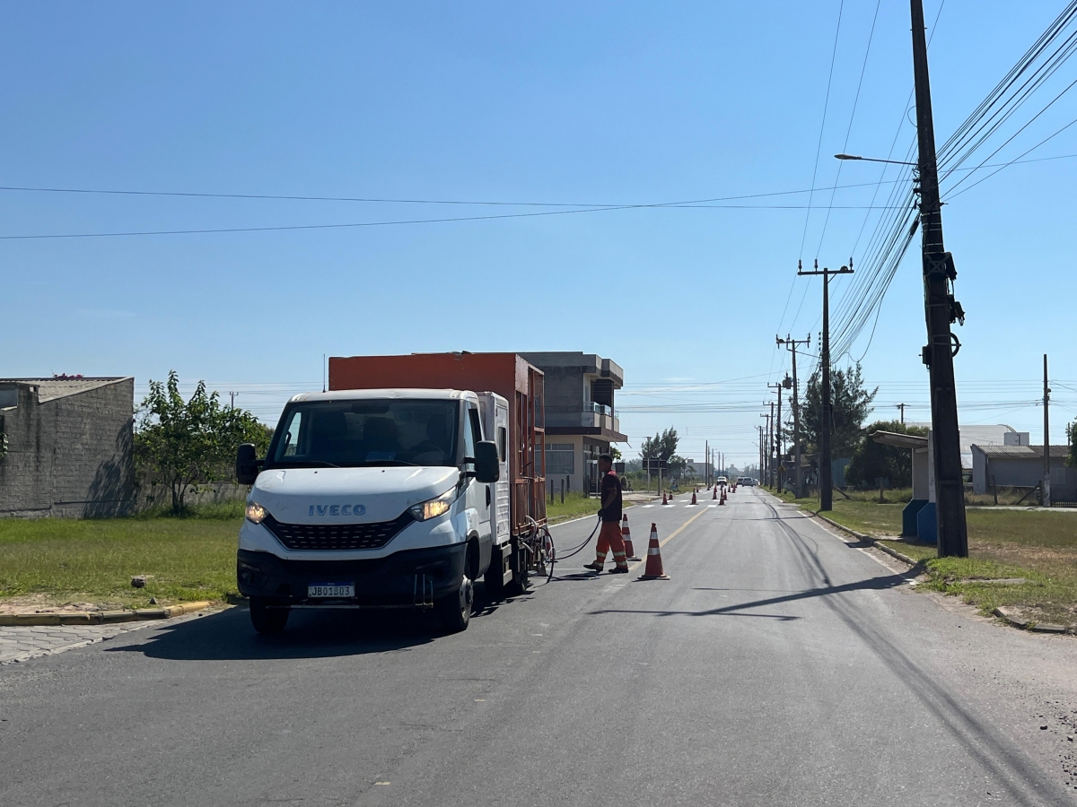 Os serviços começaram pela rua Regimento Barriga Verde e seguem também na rua Tubarão e nas avenidas Santa Catarina e Florianópolis, além de demais vias asfaltadas com maior circulação de veículos.