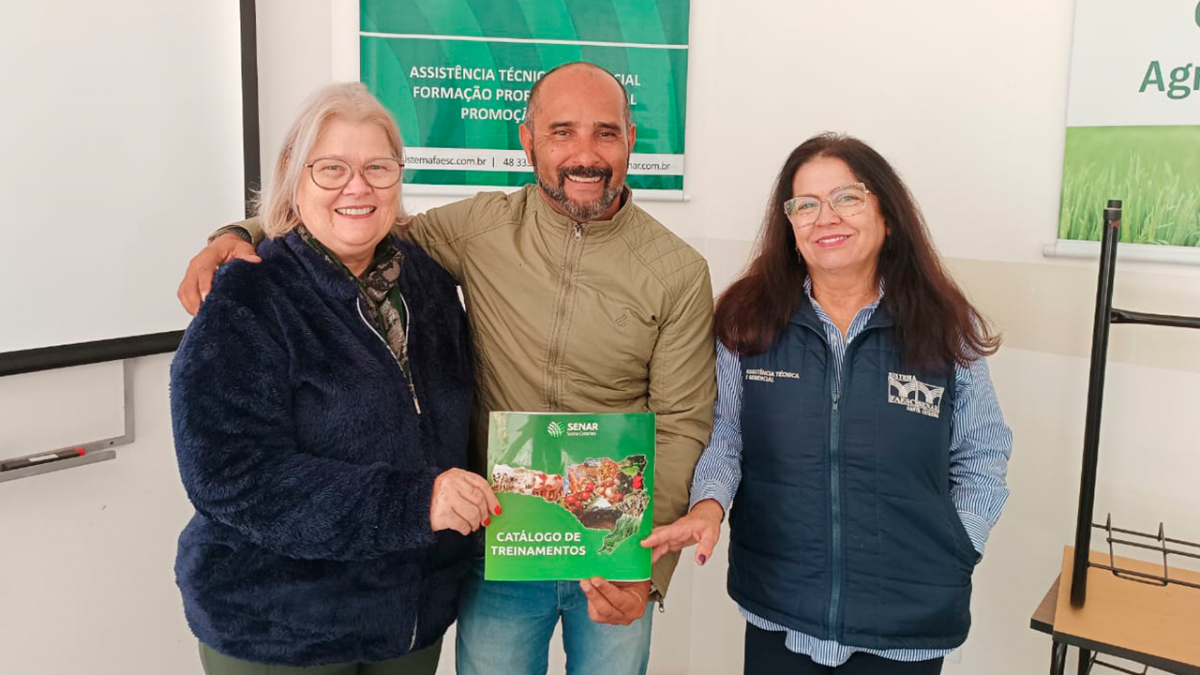 O secretário de Turismo e Esportes de Balneário Gaivota, Felipe Santos, esteve em Araranguá, na tarde de quinta-feira, 20, no Sindicato Rural do Município, onde se reuniu com a secretária da instituição, Terezinha Bortolotto e Supervisora Regional do SENAR, Sueli Silveira Rosa.
