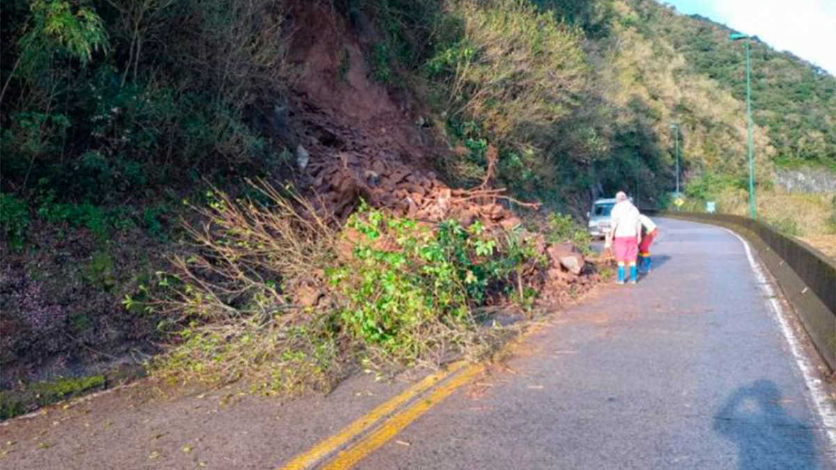 O deslizamento aconteceu por volta das 5h30, no quilômetro 409. Uma equipe de manutenção da Secretaria de Infraestrutura do Estado está sendo aguardada para a limpeza da via.