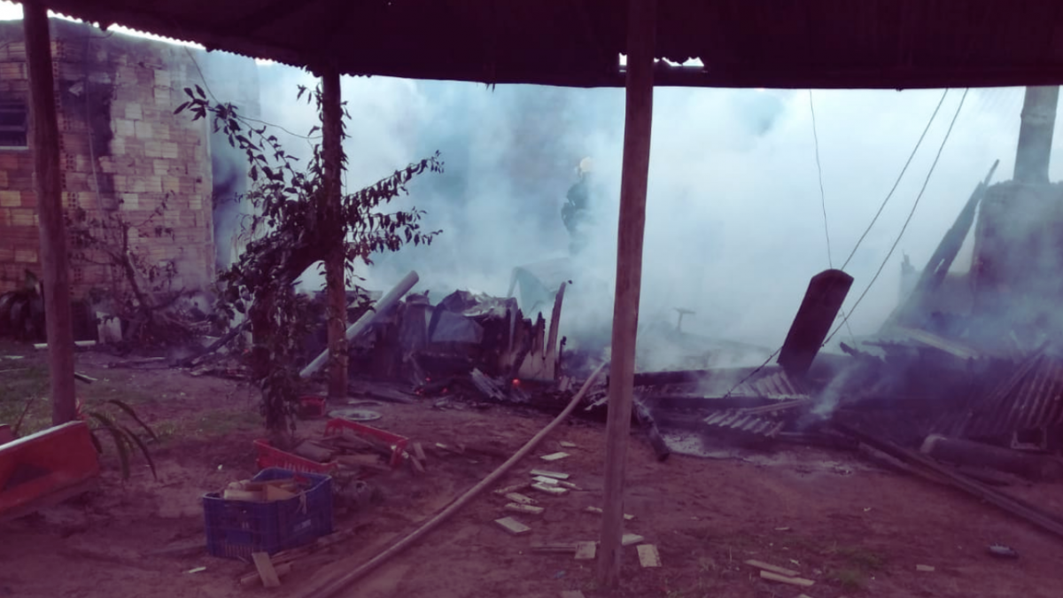 A casa foi consumida pelas chamas, mesmo com o a montagem da linha de ataque com três lances de mangueiras e a utilização de cerca de 4 mil litros de água para o combate e rescaldo.