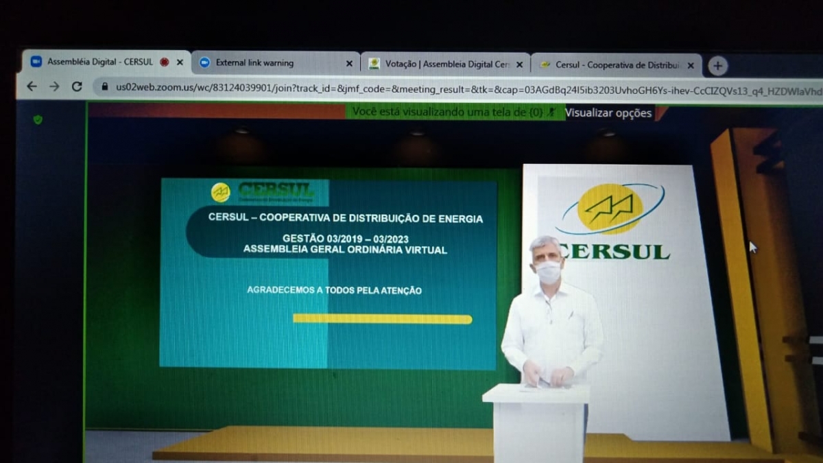 Com segurança e transparência, a CERSUL (Cooperativa de Distribuição de Energia) realizou a assembleia ordinária de 2021 de forma virtual. Apresentou entre os itens da pauta a prestação de contas, balanço patrimonial, demonstrativo de sobras e investimentos, o que resultou em um dos melhores resultados dos últimos anos. Através de um sistema seguro, os associados votaram e aprovaram os itens da pauta por unanimidade.