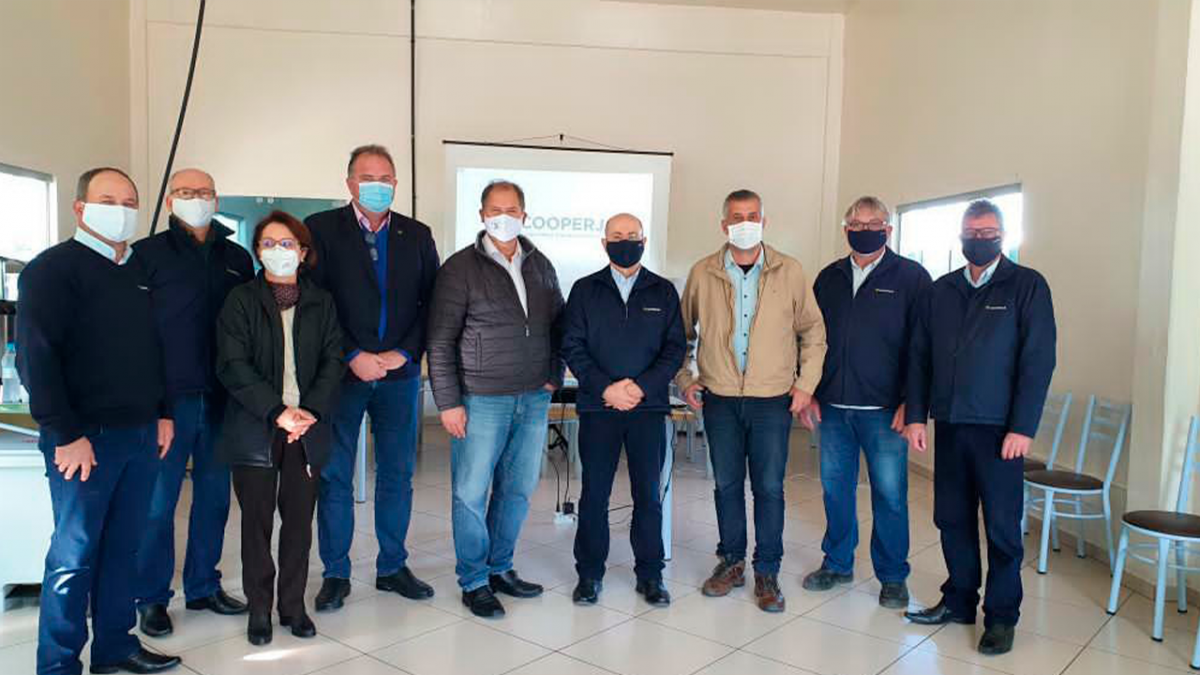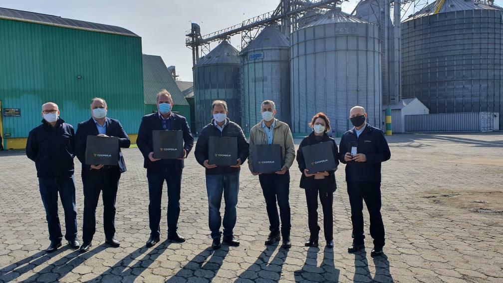 Na terça-feira 15, o presidente Vanir Zanatta, o diretor de B2B Carlos Roberto Wilk, o conselheiro José Haroldo Cadorin e o gerente da Unidade, Julberto Mendes receberam nas instalações da indústria de Santo Antônio da Patrulha/RS o Deputado Alceu Moreira da Frente Parlamentar da Agropecuária(FPA), o Deputado Evair de Melo presidente da Frente Parlamentar do Cooperativismo (Frencoop), também o secretário de Agricultura Familiar e Cooperativismo (SAF) do Ministério da Agricultura (Mapa) Fernando Schwanke, e a Superintendente Federal do Mapa/RS, Helena Pan Rugeri.