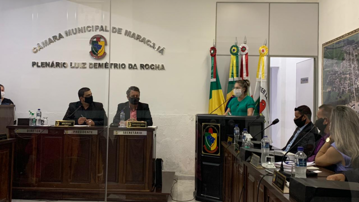 A diretora de Saúde de Maracajá, Michele Constantino Gonçalves, participou na noite de terça-feira, dia 16/03, da sessão ordinária da Câmara de Vereadores, onde prestou esclarecimentos sobre a Covid-19, no município.