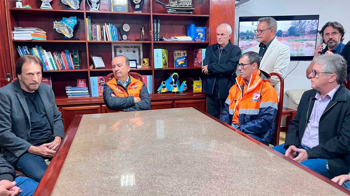 “Na prefeitura, nos reunimos com o governador, o prefeito Cesar Cesa e várias autoridades locais para atualizar as informações sobre as ocorrências dos altos volumes de chuva em toda região.