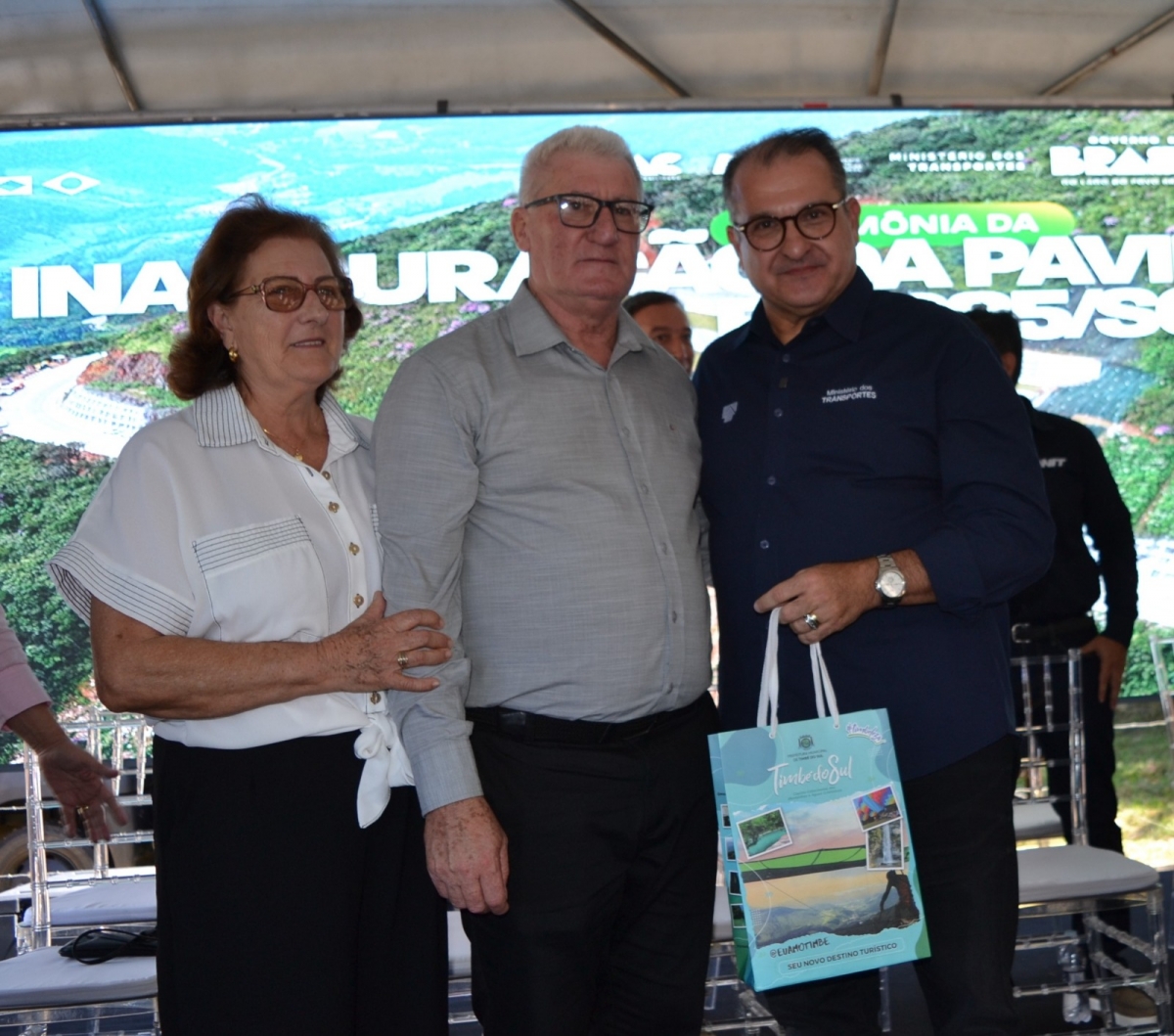 Com a presença de autoridades que deixaram marca na conquista histórica da obra que levou 10 anos para ser concluída, esteve presente o Ministro de Estado dos Transportes, George Santoro, o prefeito de Timbé do Sul, Vilmar Maffiolette e representantes de diversos órgãos da região e país.