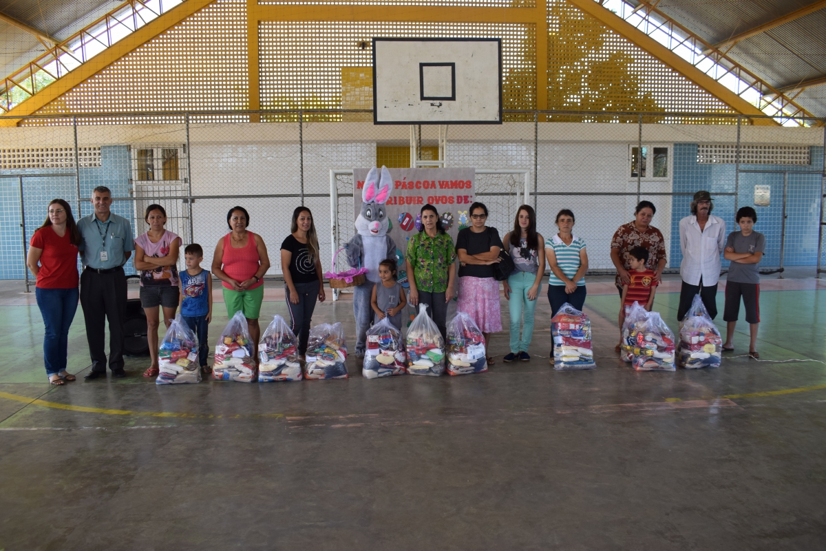 Alunos e professores da EMEB Arizona, de Jacinto Machado, realizaram nesta quinta-feira, 18, mais uma edição do Projeto Páscoa Solidária, colaborando para que 12 famílias das proximidades da escola recebessem uma cesta básica. A festa de páscoa também contou com apresentações dos alunos feitas especialmente para a data e a presença do coelhinho da páscoa.