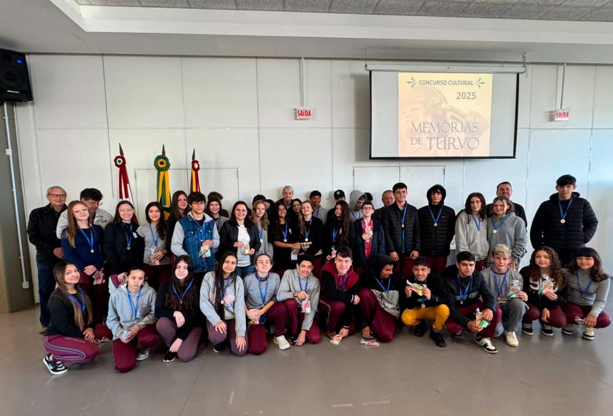 O Centro de Eventos de Turvo foi palco da cerimônia de premiação do Concurso Cultural “Memórias de Turvo”, uma iniciativa que uniu alunos do Ensino Fundamental e Médio em torno da valorização da identidade e do patrimônio histórico local.