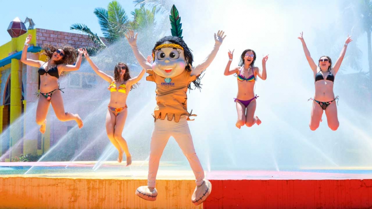 Uma piscina tropical em formato de praia com bar molhado e várias figuras que formam um cenário lindo. A rampa do cavalo contém toboáguas eletrizantes que proporcionam descidas incríveis e ainda uma rampa molhada que termina com um delicioso banho d’água em uma piscina. É atração radical para toda a família.
