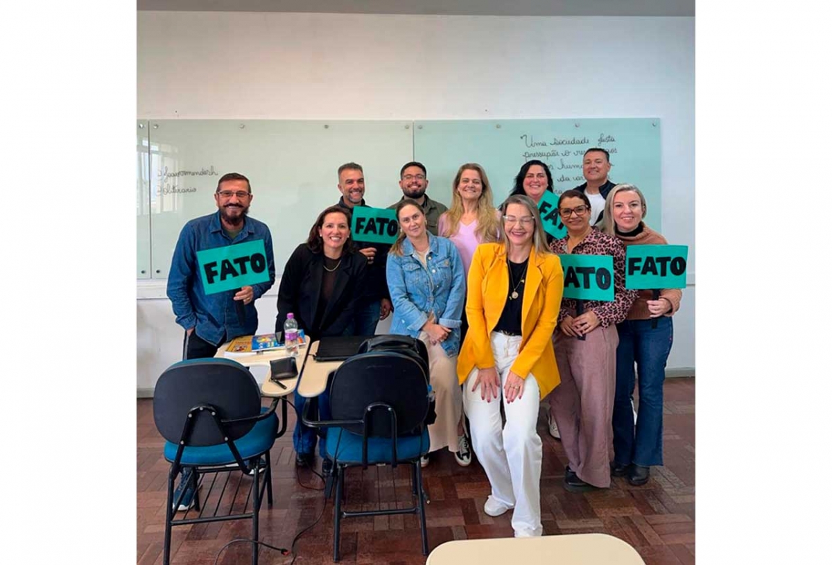 A atividade final, intitulada Fato ou Fake, utilizou a gamificação para identificar características dos gêneros, incentivar a leitura e promover análise coletiva de textos. O momento foi interativo e dinâmico, e os professores já replicam a experiência em sala de aula com seus estudantes.