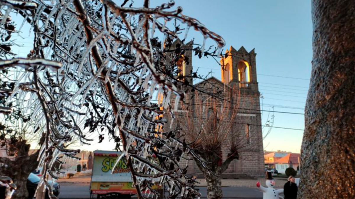 Árvore amanheceu coberta de gelo no dia mais frio do ano em Urubici – Foto: Maria Fernanda Salinet/NDA expectativa para sentir o ar gelado fez turistas acordaram cedo em Urubici. Por volta de 6h30, algumas pessoas posavam para fotografias em frente ao termômetro de rua no Centro da cidade, onde marcava -7°C. A sensação térmica era de -10°C.