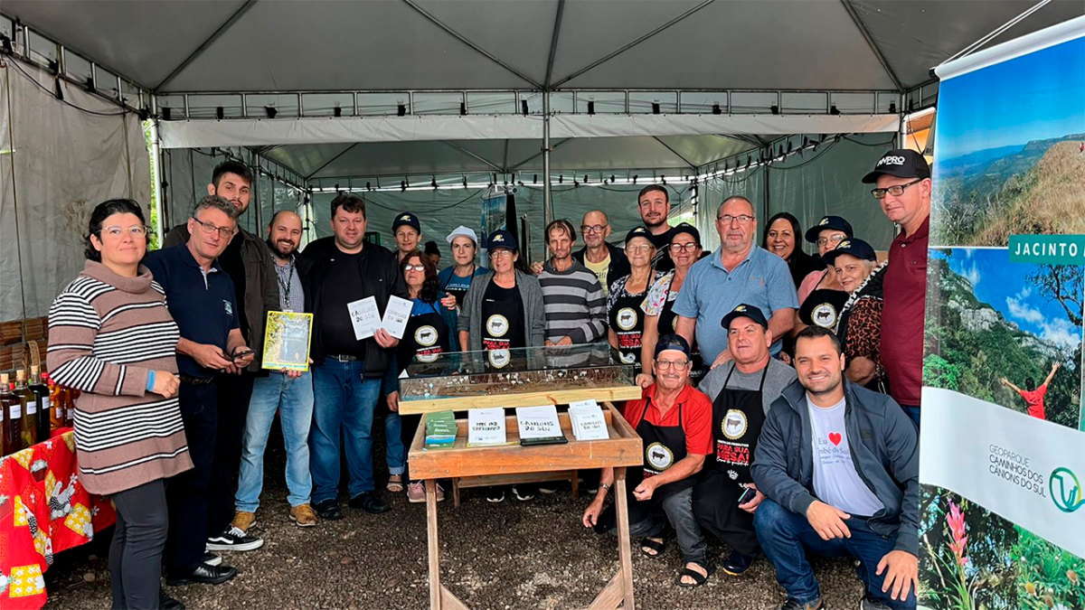 Nesta sexta-feira (14), a Feira da Agricultura Familiar de Timbé do Sul foi diferenciada. Junto do comércio de orgânicos, alimentos caseiros e artesanato, a equipe do Geoparque Mundial da UNESCO Caminhos dos Cânions do Sul esteve presente comemorando o primeiro ano de chancela, título conquistado em 13 de abril de 2022, que marcou uma nova fase para a região contemplada.