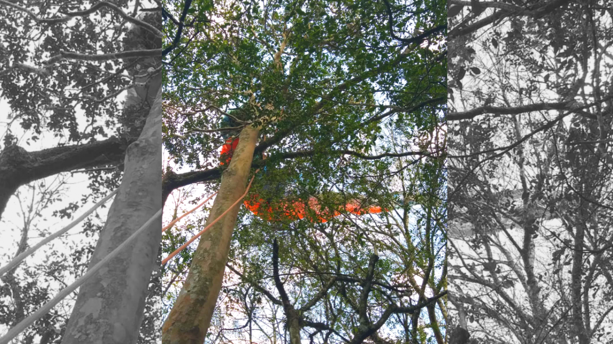 Para o resgate, os bombeiros usaram um sistema com uma cadeira presa na árvore (veja a foto acima). No chão, ele chegou a ser atendido pela equipe, mas não precisou ser encaminhado ao hospital.