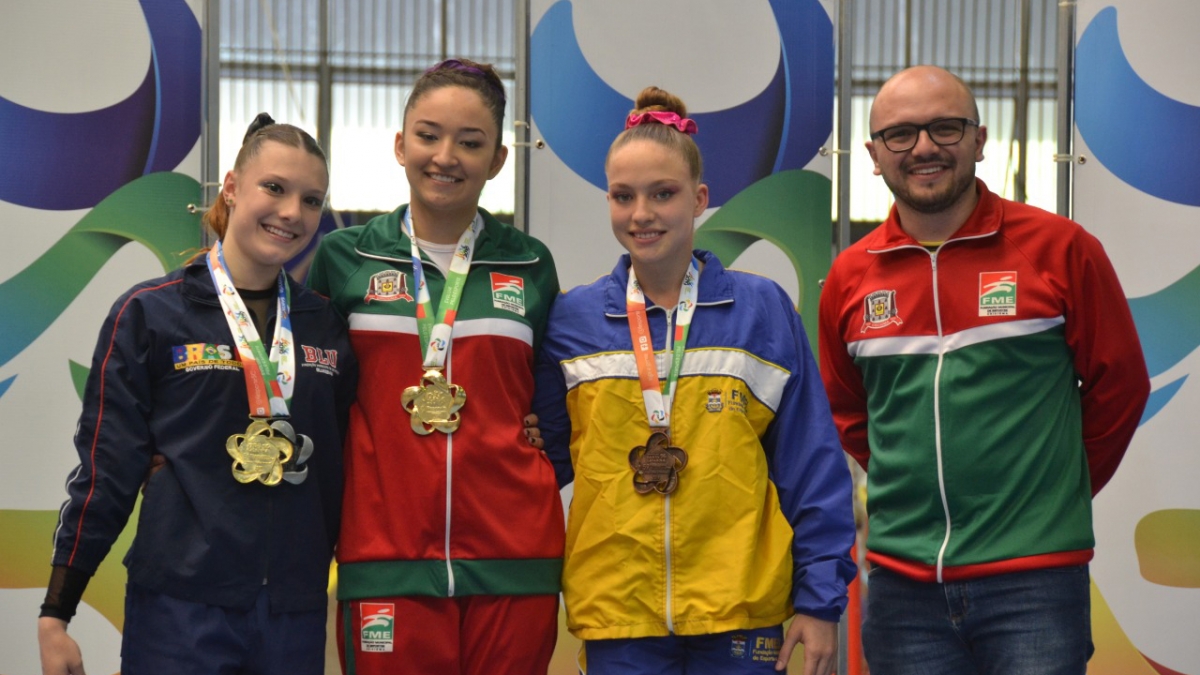 A ginasta Sabrina Eduarda Loureiro Elias ficou na terceira colocação geral, foi campeã nas paralelas assimétricas, segunda colocada no solo e bronze na trave. A modalidade, que foi disputada em Blumenau, encerrou neste domingo (3).