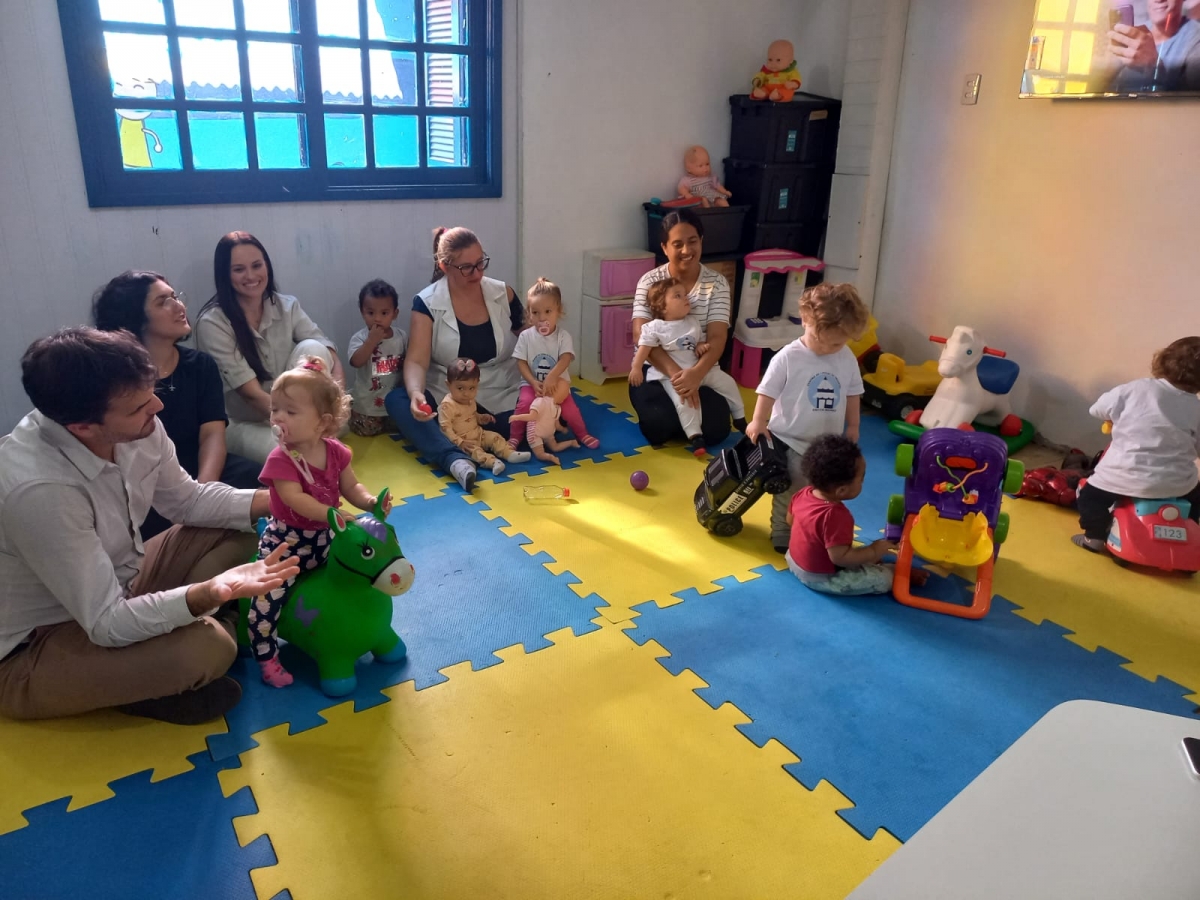 Tiago Fernandes, representante comercial da Bomplast Industria de Embalagens localizada no oeste de Santa Catarina, em visita a entidade, ficou muito encantado com os trabalhos que a instituição faz em prol das crianças e disse que neste momento de tristeza que o sul do pais vem atravessando devido as enchentes é um previlegio ter a oportunidade de fazer o bem.