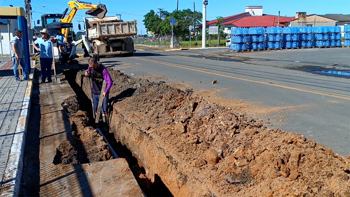 A obra que está sendo executada pelo Samae e Secretaria de Obras do município, compreende a troca de canos de 55 milímetros por 110 milímetros, dobrando a capacidade de vazão da água.