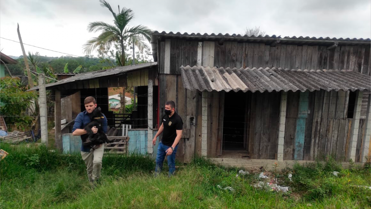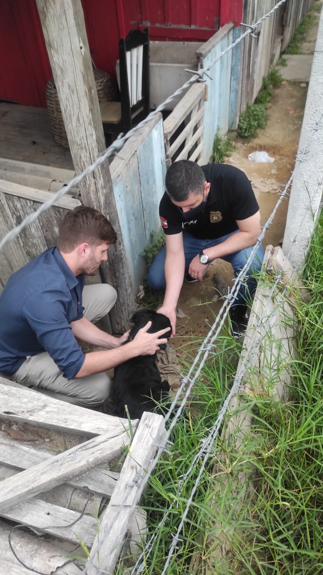 Verificando a situação de maus tratos, imediatamente foi buscado apoio com uma organização do município de Turvo (SOS 4 Patas), que prontamente atendeu ao chamado e auxiliaram no resgate.