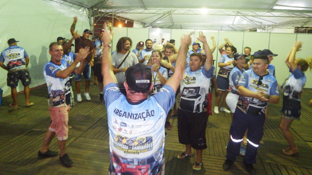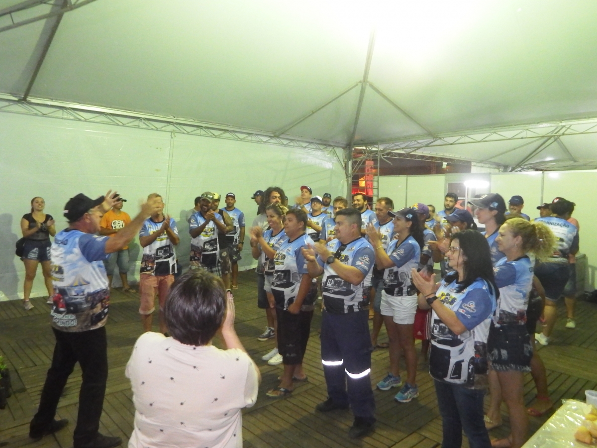 Ao final das competições no domingo, 8 de março, o prefeito Juscelino da Silva Guimarães, o Mineiro, reuniu seus secretários, diretores e servidores que atuaram na trigésima edição da Arrancada de Caminhões. O encontro na CCO foi para agradecer pelo engajamento de todos e somando-se as agências contratadas para organizar a grande festa. “Foi a minha quarta arrancada e estou muito feliz porque convoquei a todos para trabalhar em equipe e quando a gente faz com dedicação o trabalho sempre é bem executado e vocês estão de parabéns”, disse. Mineiro pediu para que cada colaborador desse um abraço no seu colega como símbolo da união existente entre os vários setores da Administração Municipal.