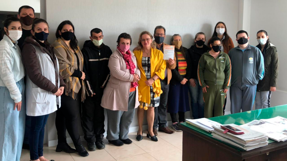 Os visitantes também aproveitaram a visita para divulgar a Semana Nacional da Pessoa com Deficiência Intelectual e Múltipla, que é uma campanha anual, desenvolvida de 21 a 28 de agosto, pela Federação Nacional das Apaes.