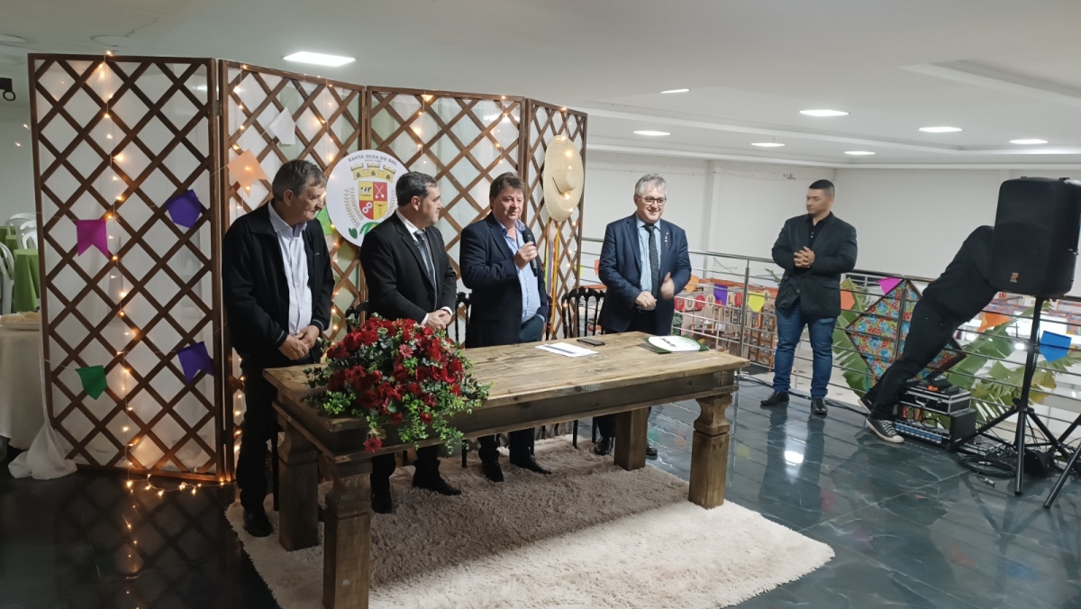 Os prefeitos parabenizaram Santa Rosa do Sul pelo evento e prestigiaram o cerimonial de abertura do evento.