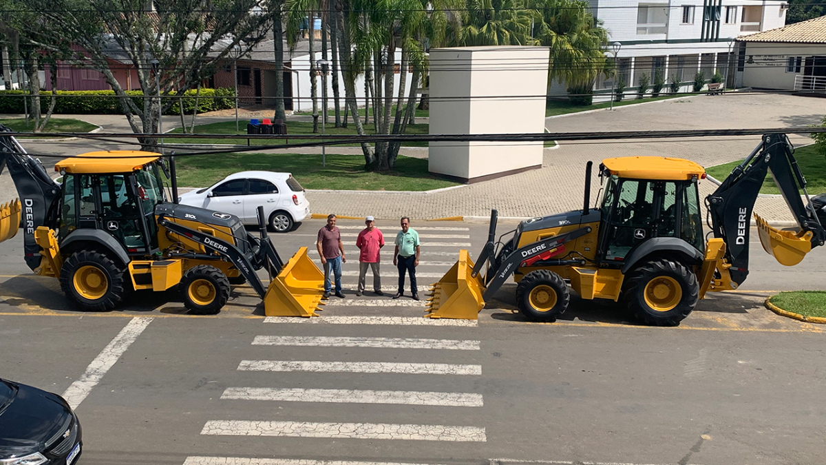 Os novos bens (retroescavadeiras marca John Deere, modelo 310L) que irão compor a patrulha mecanizada do município foram adquiridos por meio de pregão presencial, totalizando o montante de R$ 878.000,00 em investimentos.
