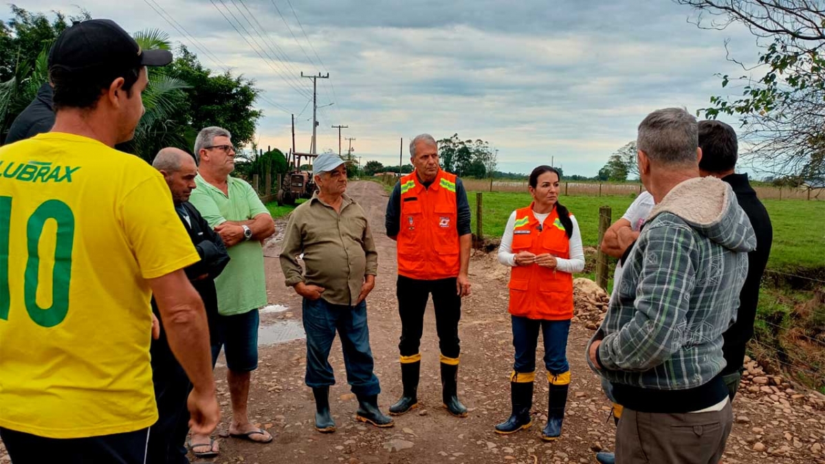 Pela manhã, o secretário de obras Volneci Moraes, a engenheira civil Natália da Rosa e a prefeita Gislaine Cunha estiveram na comunidade do Campo D’água, após o pedido de moradores, onde verificaram a situação de algumas ruas.
