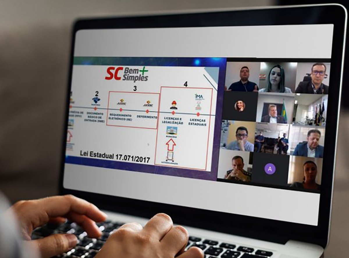 Santa Catarina avança em competitividade. Uma videoconferência com a presença de mais de 40 municípios marcou mais um passo no funcionamento do novo sistema de simplificação nas aberturas de empresas no Estado, o SC Bem Mais Simples. O encontro ocorreu após avaliações técnicas relativas à integração dos órgãos licenciadores com a Junta Comercial de Santa Catarina (Jucesc).