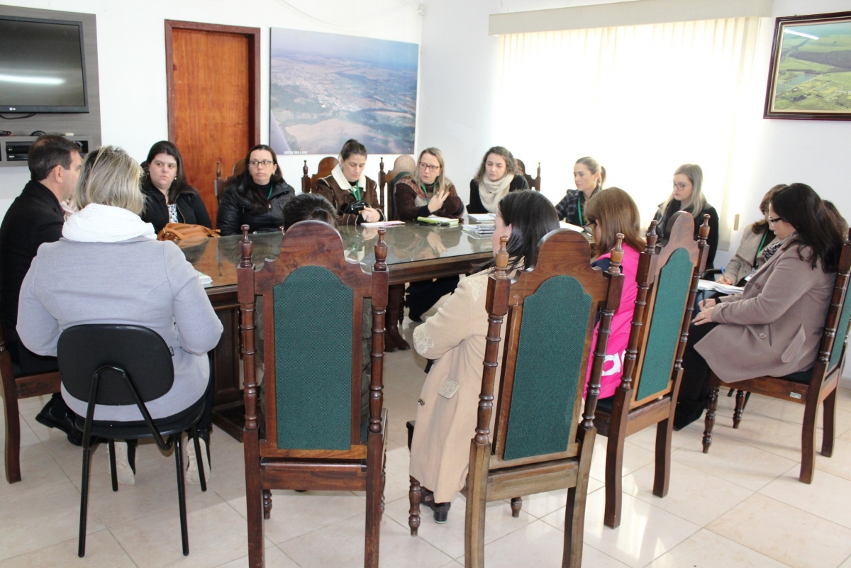 Com objetivo de criar condições e requisitos efetivos e práticos, evitando lacunas e dúvidas, na legislação que prevê a progressão dos profissionais da educação na carreira profissional no município, o prefeito Arlindo Rocha, a diretora de Educação Cristiane Sant`Ana, a secretária de Administração, Marluci Vitali e a assessora jurídica Tatiane Pereira, se reuniram com uma comissão de professores, nesta segunda-feira (5). A presidente do Sindicato dos Servidores, Rosane de Faveri, participou da reunião.
