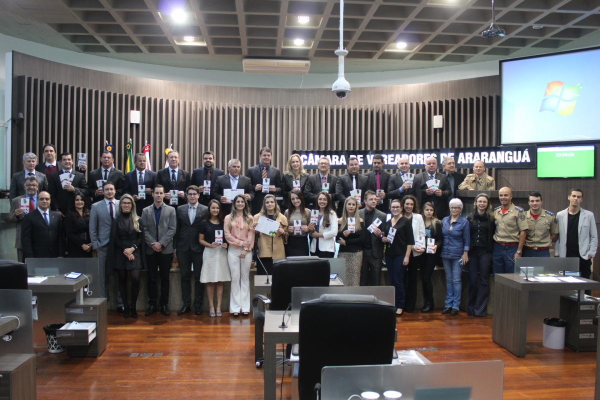 A Câmara de Vereadores é a principal apoiadora do projeto que consiste na distribuição de 40 mil cartilhas com informações de seis áreas do Direito, contemplando alunos do 5º ao 9º ano de 21 escolas públicas do município. “Muito importante apoiarmos esta ideia que surgiu como forma de promover o pleno exercício da cidadania das futuras gerações araranguaenses. Devemos parabenizar também a disponibilidades dos advogados de nossa cidade em promover uma ação voluntária e tão importante quanto essa”, comentou o presidente da Câmara, Daniel Viriato Afonso. Os demais vereadores também parabenizaram a ideia e elogiaram a iniciativa da diretoria da subseção.