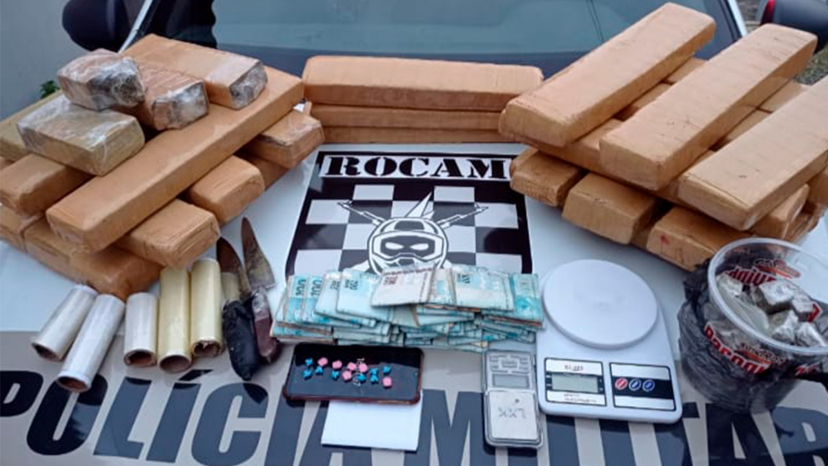 Na casa, havia um forte cheiro de maconha e, com auxílio do K9, foi encontrado um pote com maconha embalada e pronta para a venda. A PM encontrou ainda R$ 39.172 em dinheiro.