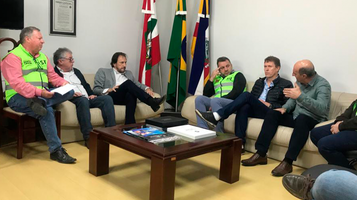 Em visita à região sul, o Secretário de Infraestrutura do Estado, Jerry Comper, esteve no gabinete do Prefeito Cesar Cesa, juntamente com outras autoridades e assessoria.