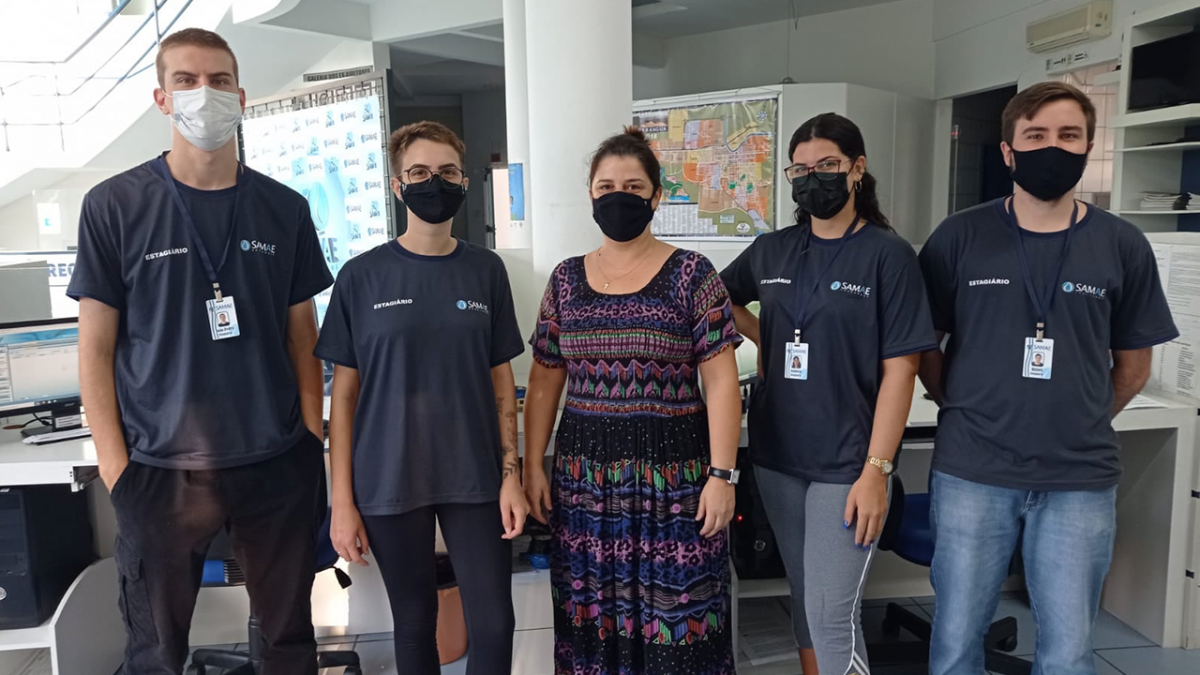 Para desempenhar estas múltiplas funções, o grupo trabalha com disciplina, discrição e harmonia sob a regência (ou melhor, coordenação, rsrsrs) da maestra (chefe de equipe), Sabrina Maciel Marcos, credenciada pela experiência de 24 anos atuando como servidora pública municipal. A equipe da manhã do setor comercial é integrada pelos estagiários - que são estudantes desempenhando atividades profissionais no contraturno escolar - João Pedro Teixeira Campos, Rafael Capeletti, Izadora Manoel e Anna Beatriz Della (na foto com a coordenadora Sabrina).