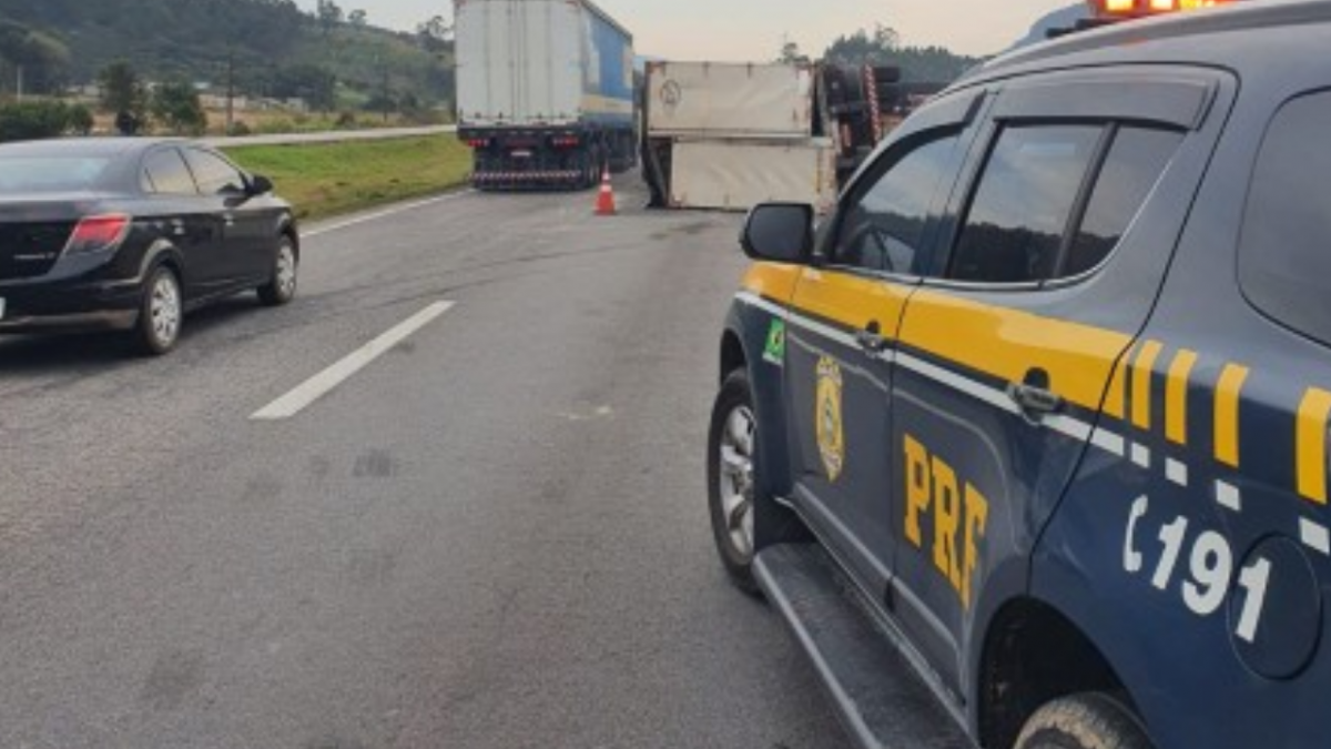A Polícia Rodoviária Federal (PRF) informou na manhã desta quarta-feira, dia 14, que uma carreta tombou após pane mecânica na BR-101, em Paulo Lopes, e uma pista no km 268 está bloqueada para tráfego de veículos.