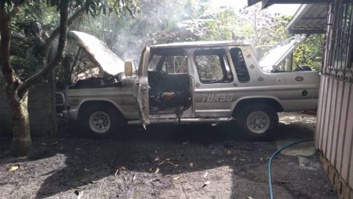 Um carro Ford F-100 pegou fogo neste domingo, 17, em Sombrio. O fato aconteceu por volta das 13h07, na Rua Olavo Antônio dos Santos, Bairro Guarita.