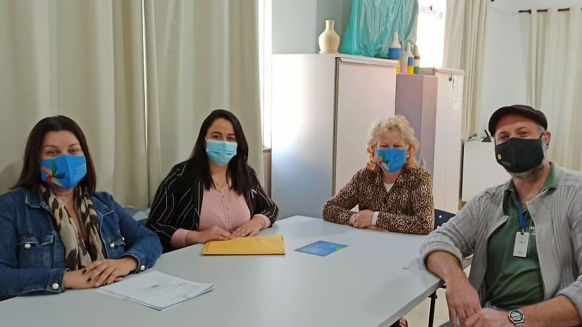 Brenda foi recepcionada pela diretora de desenvolvimento social, Jucélia Costa, pela profissional responsável pelo Cadastro Único do município, Tatiane Vanzin, pelo psicólogo Romalino Rescarolli Junior, e toda equipe do CRAS.