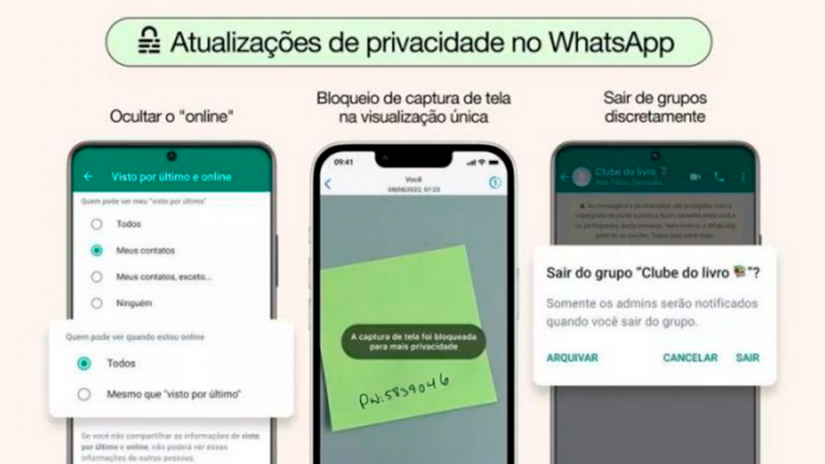 Além disso, o WhatsApp permitirá deixar grupos de maneira silenciosa, ou seja, sem que todos fiquem sabendo, e também bloquear o print screen (captura de tela) em mensagens de visualização única.