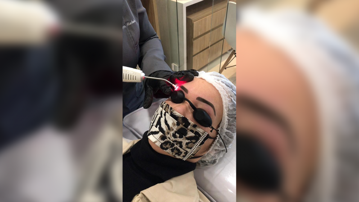 Minha sobrancelha era torta e tinha uma micropigmentação relativamente recente, porém muito profunda e acinzentada. Procurei a Andreza pra ver se ela dava jeito de corrigir essas duas situações, já que eu sei que ela é especialista em designer e micropigmentação! E, (ufa! ), estamos alcançando o resultado desejado: correção do desenho da sobrancelha e a busca pelo tom adequado à minha pele e cor do cabelo.
