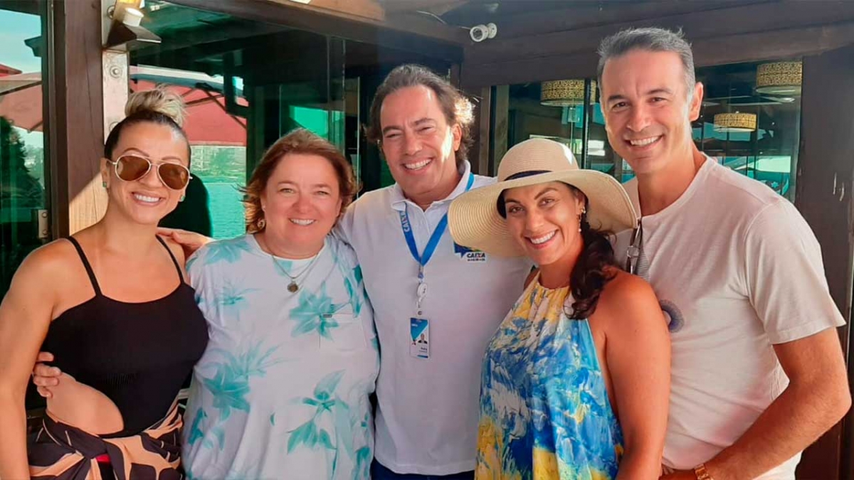 Presidente da Caixa Econômica Federal, Pedro Duarte Guimarães, marcando presença no renomado Geraldos Restaurante, em Laguna. Turma de Araranguá que curtiu o sábado, apreciando a bela gastronomia do local, aproveitou pra fazer o registro. Na foto Cláudia Vieira, Grasi Drey e o casal Miquele e Fabrício.