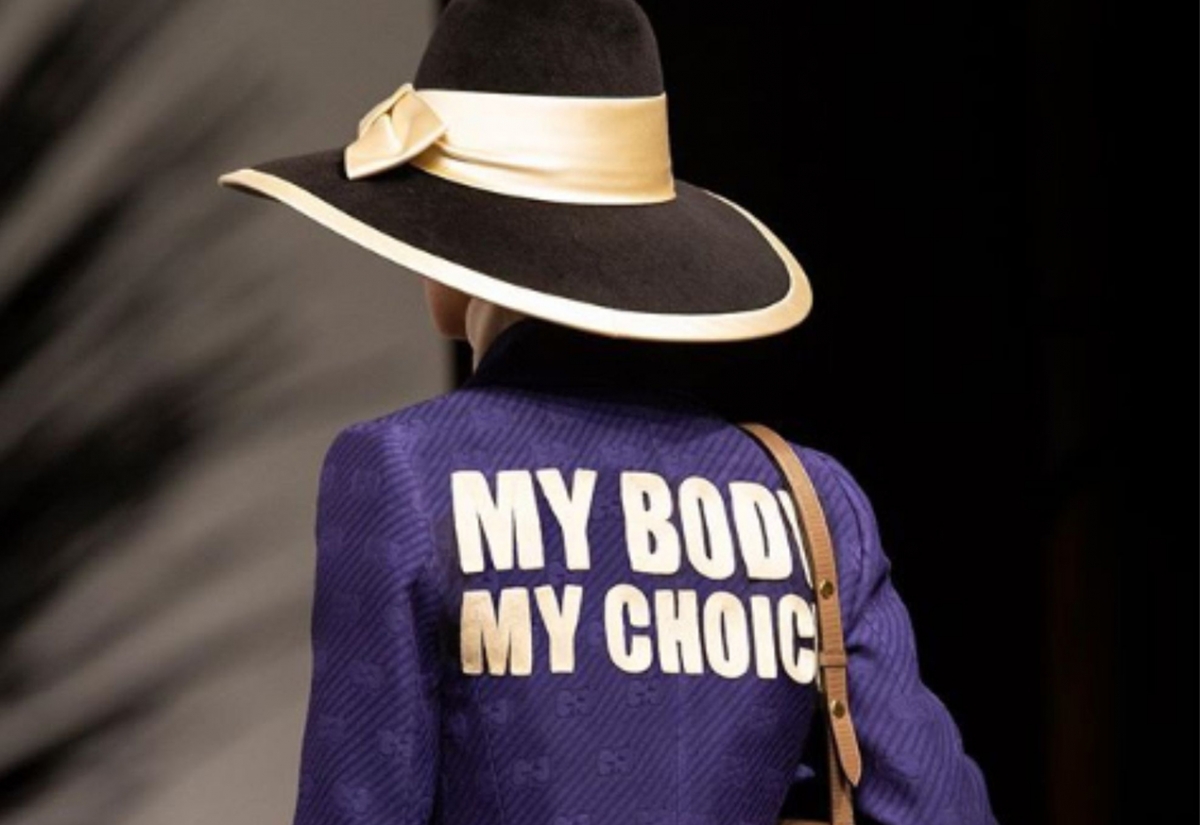 O ápice do último desfile e coleção da Gucci foi o vestido com útero bordado que carrega todo um simbolismo de forma singela, e a estampa 22.05.1978, data em que a legislação para proteção social materna e aborto entrou em vigor na Itália, local matriz da marca. Para Michelle"É inacreditável que, em todo o mundo, ainda haja pessoas que acreditam que podem controlar o corpo de uma mulher, a escolha de uma mulher”.