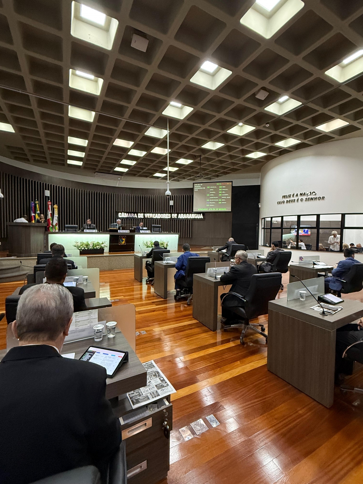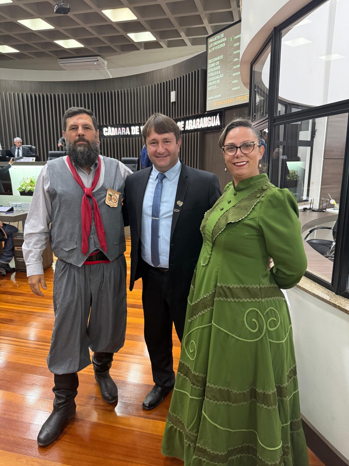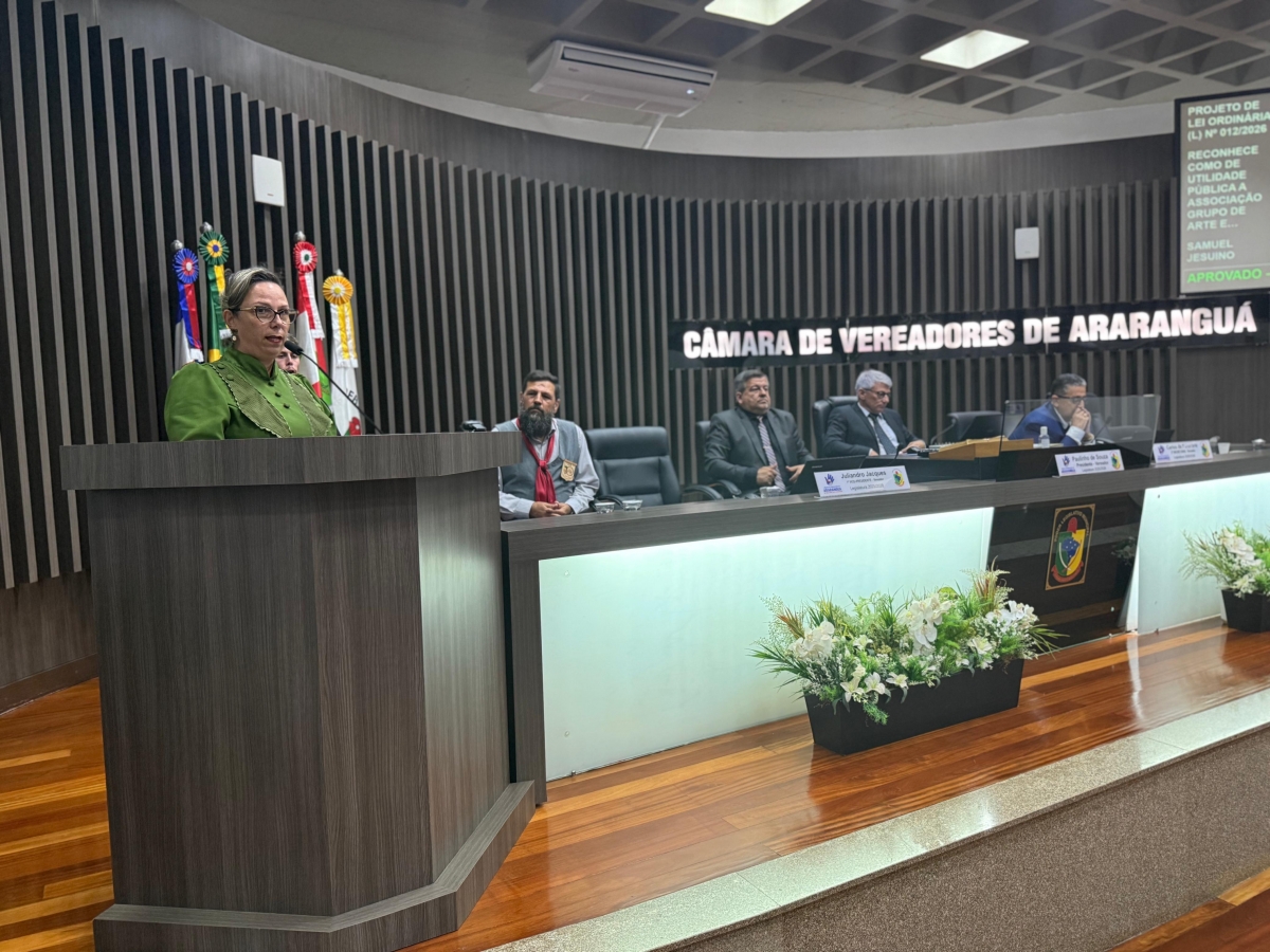 A Câmara de Vereadores de Câmara de Vereadores de Araranguá realizou, na noite dessa segunda-feira, 16, a 11ª sessão ordinária de 2026, marcada por uma ampla pauta de debates e pela discussão e aprovação de importantes matérias de interesse da comunidade. Entre os destaques da noite esteve o Projeto de Lei nº 012/2026, de autoria do vereador Samuel Jesuíno, que reconhece como de utilidade pública a Associação Grupo de Arte e Cultura Anjos da Tradição, entidade que atua na promoção e valorização das manifestações culturais no município.