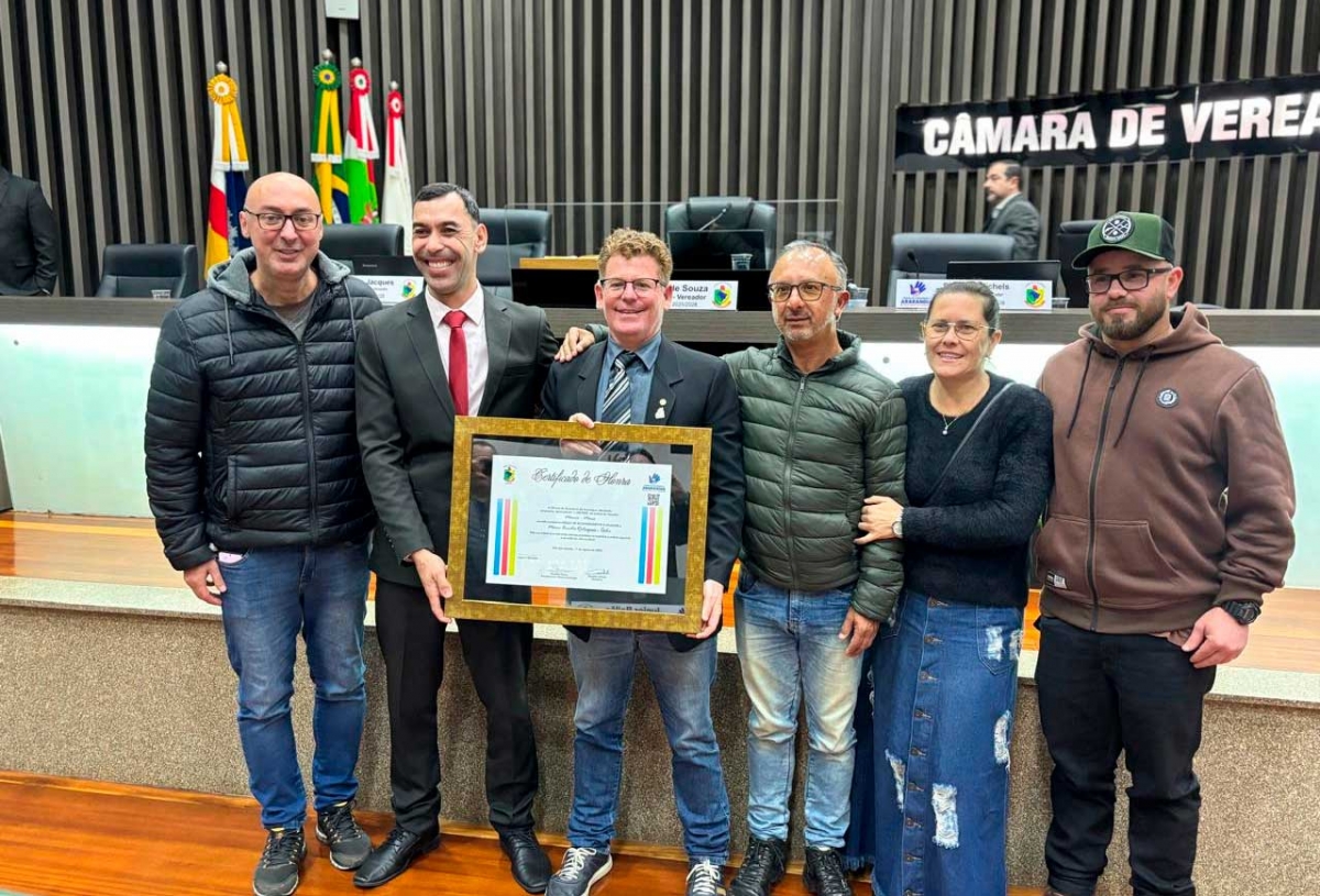 Na 39ª Sessão Ordinária da Câmara de Vereadores de Araranguá, realizada nesta segunda-feira (11), foi aprovada por unanimidade a Moção nº 027/2025, de autoria do vereador Márcio Mano. A homenagem reconhece a trajetória do atleta profissional e palestrante motivacional Marco Aurélio Rodrigues, conhecido como “Tocha”, pelos relevantes serviços prestados no incentivo ao esporte e à promoção de um estilo de vida saudável.