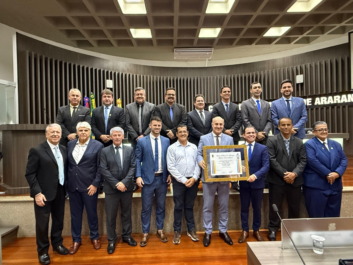 A Câmara de Vereadores de Araranguá concedeu, na noite dessa segunda-feira, 16, durante a 11ª sessão ordinária de 2026, o Título de Cidadão Honorário Araranguaense ao deputado estadual José Milton Scheffer, em reconhecimento aos relevantes serviços prestados ao município. A honraria foi proposta por meio do Projeto de Decreto Legislativo nº 001/2026, de autoria dos vereadores Douglas Michels, secretário da Mesa Diretora, e Diran Martins, 2º vice-presidente.