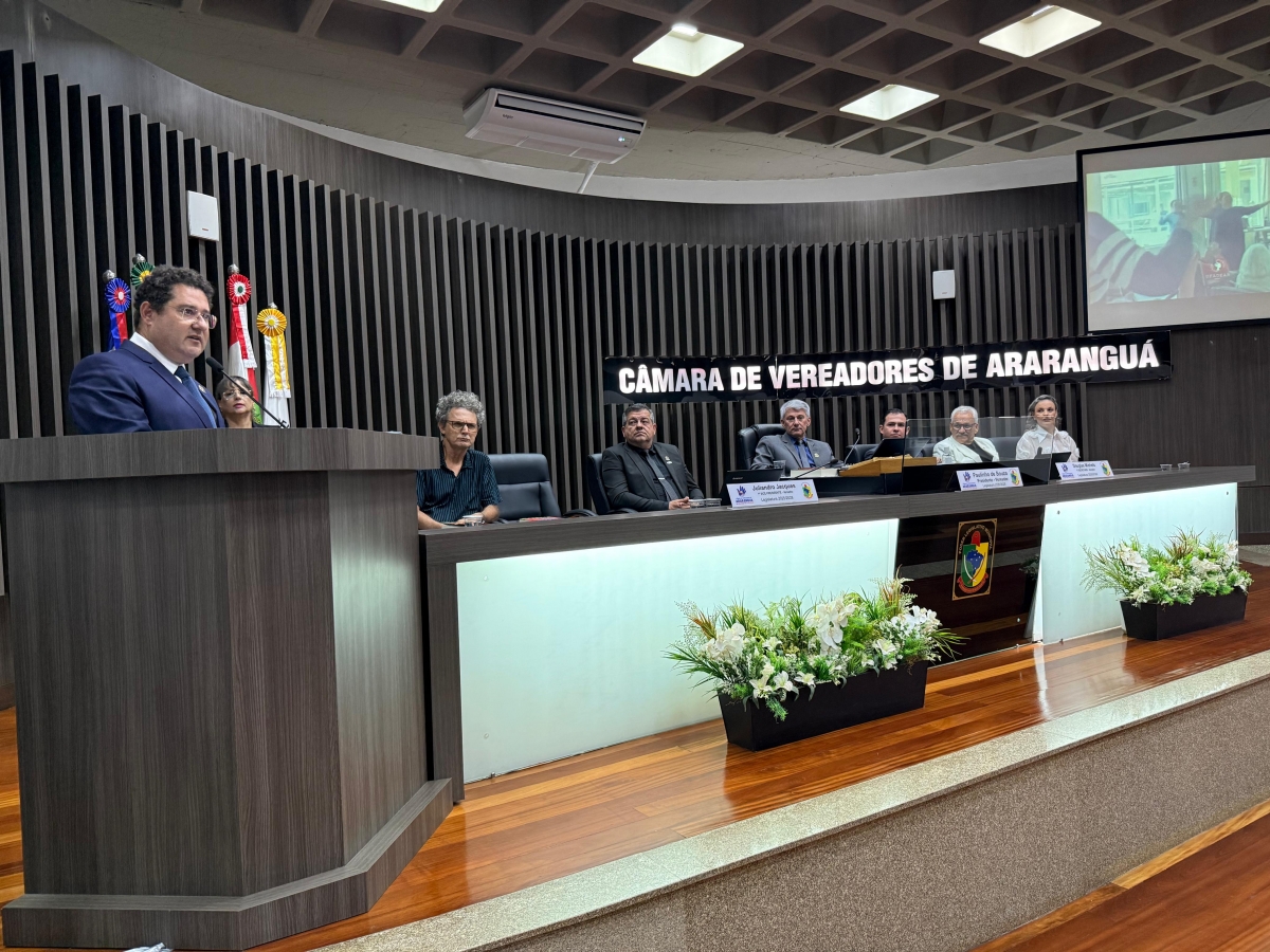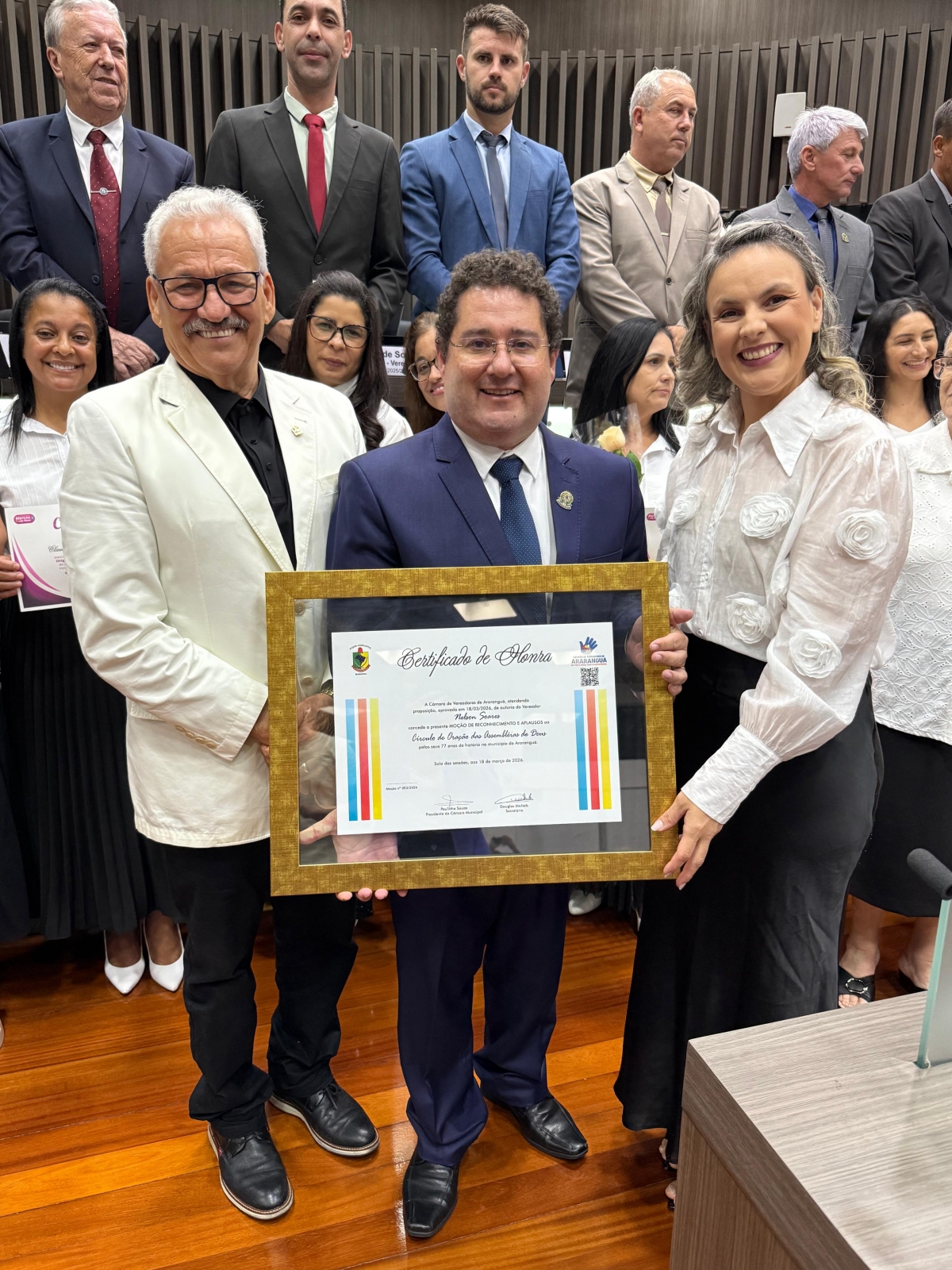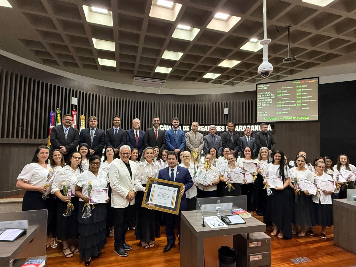 A Câmara de Vereadores de Araranguá realizou, na noite desta quarta-feira, 18, a 12ª sessão ordinária de 2026, ocasião em que foi entregue a Moção nº 003/2026, de autoria do vereador e líder de governo Nelson Soares, concedendo Moção de Reconhecimento e Aplausos ao Círculo de Oração das Assembleias de Deus pelos 77 anos de história no município.