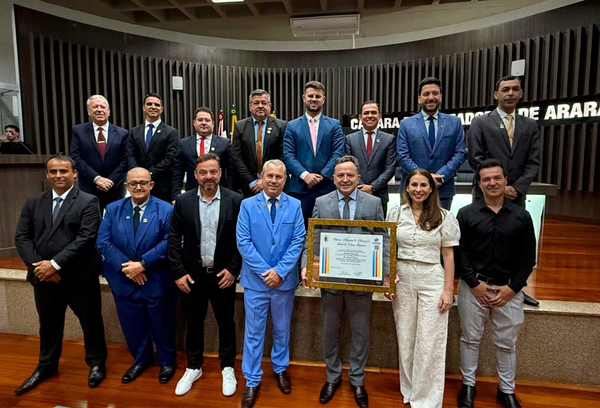 A Câmara de Vereadores de Araranguá aprovou e realizou a entrega do Título de Cidadania Honorária ao Dr. André Pedroso durante a sessão ordinária da noite desta segunda-feira, 08. A homenagem foi concedida por meio do Projeto de Decreto Legislativo nº 018/2025, de autoria do vereador Evandro Conceição, com a presença de familiares e colegas de profissão do homenageado.