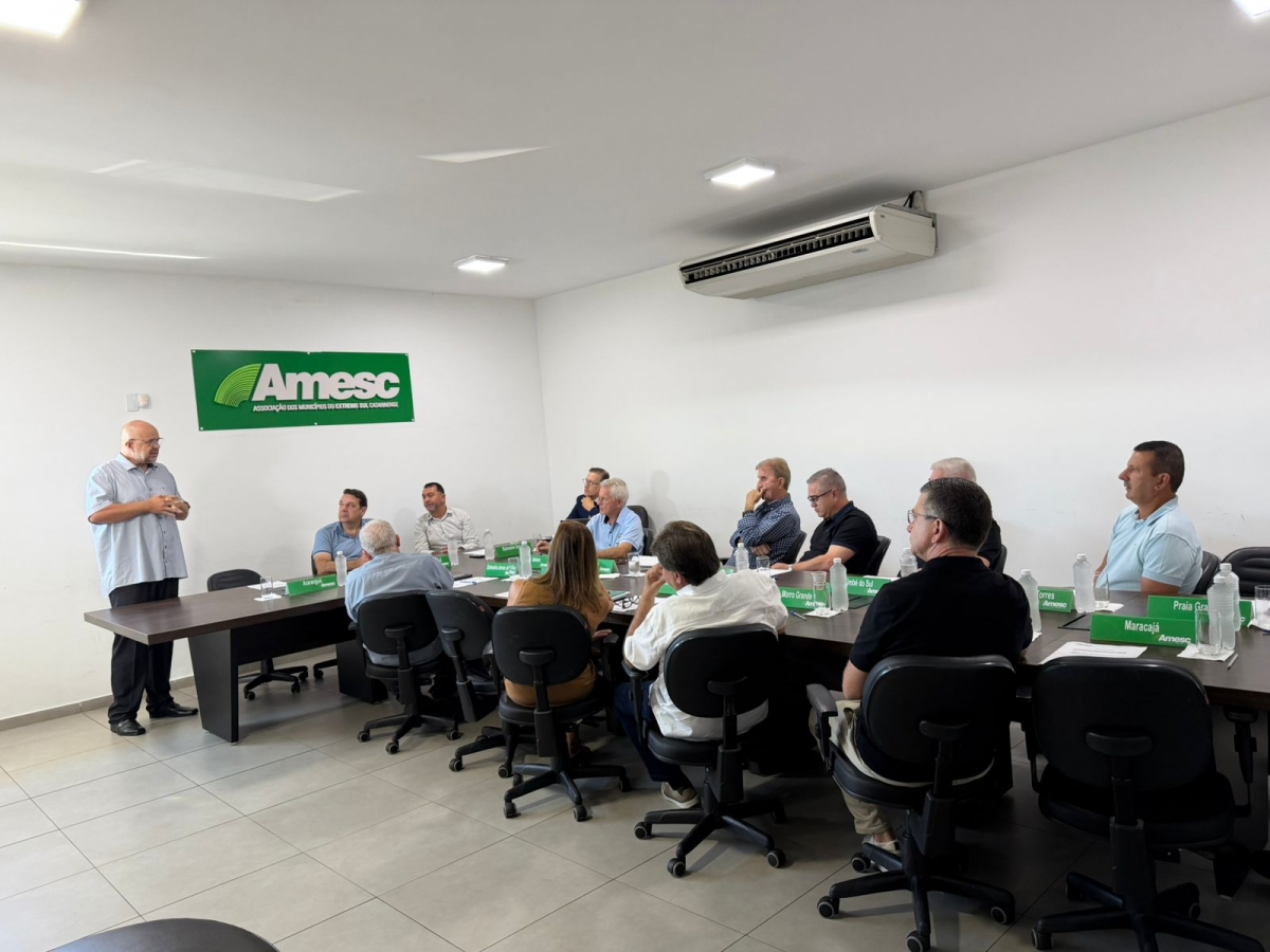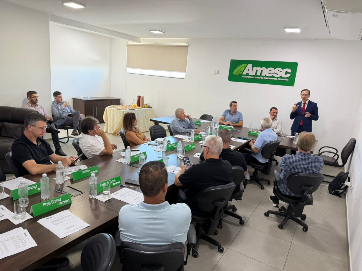 Prefeitos da Associação dos Municípios do Extremo Sul Catarinense (AMESC) participaram da assembleia mensal, realizada na sede da entidade na manhã desta quarta-feira (25), para tratar de temas estratégicos à gestão pública.