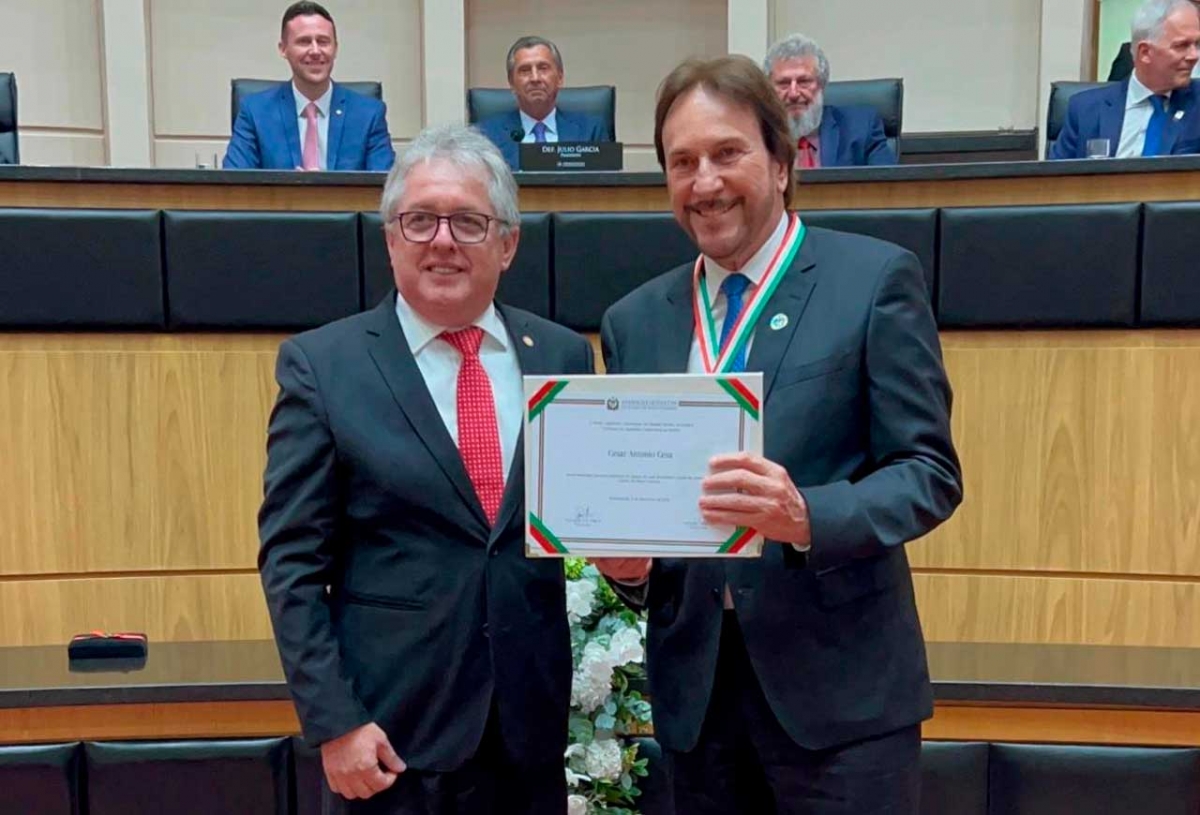 O presidente da Alesc, deputado Julio Garcia (PSD), lembrou que a comenda, pela variedade de homenageados, demostra uma das principais virtudes de Santa Catarina: a diversidade. O destaque ficou por conta da entrega da comenda ao prefeito de Araranguá, Cesar Antônio Cesa, concedida através do deputado estadual Tiago Zilli. O parlamentar destacou a gestão do prefeito Cesar, marcada por avanços na infraestrutura e na modernização da administração municipal.